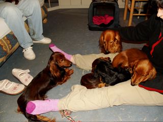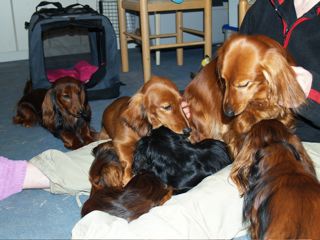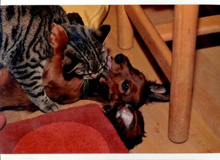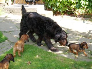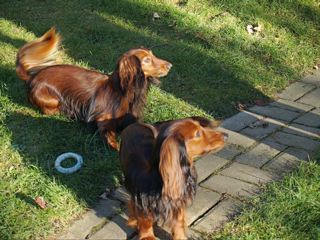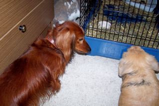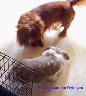 Christa, Dackelfreundin aus Dresden schickte uns wunderbare Fotos von ihrem Pauli zusammen mit den Kaninchen ihres Enkels. - Auf dem rechten Foto: Links steht Pauli, rechts neben ihm Willi und im Hintergrund ist wieder Maxi zu sehen. - Es gibt sie, die Verständigung zwischen den Arten!