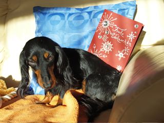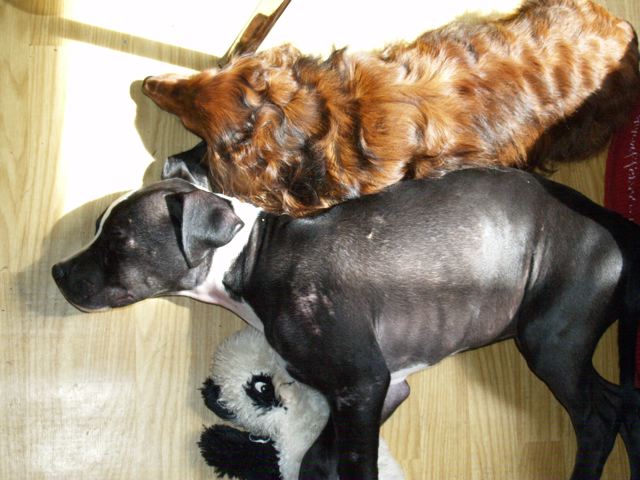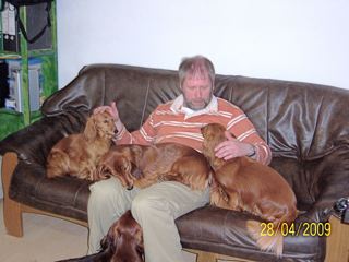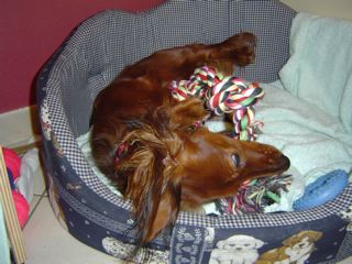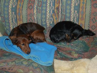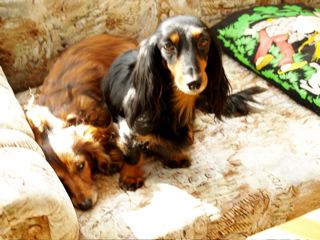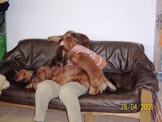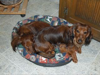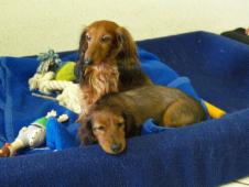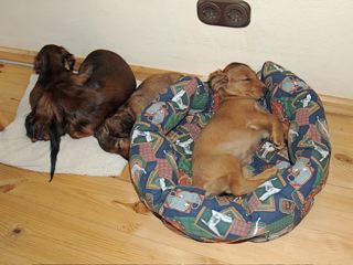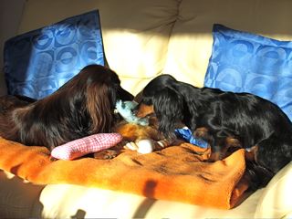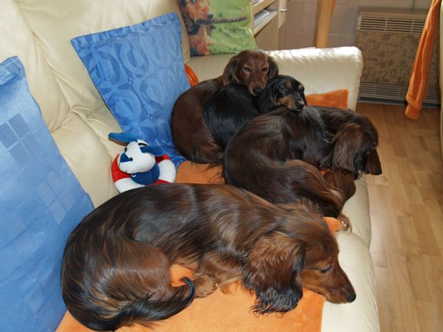 In der gemütlichen Ferienwohnung: Frodo und Emily auf der Couch - Angus und William im Körbchen