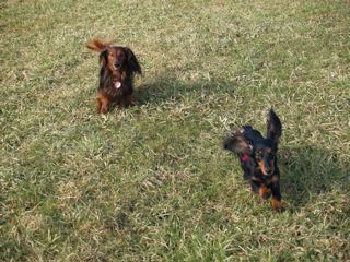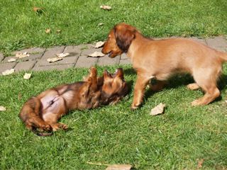 William und Viola toben wie vorher in St. Georgen - Foto rechts: William und hinter ihm Wiebke