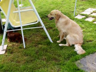 Ilka schaut zweifelnd hoch - was machen die da bloß? - Angus und Déjàvu wollen toben!