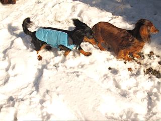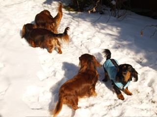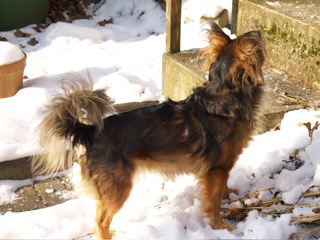 Die Schneefotos entstanden am 10. Januar. Emily hat ein Mäntelchen an - die Sonne scheint, aber es ist sehr kalt.