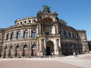 Die Semperoper in Dresden - und nun mit "Touristen" im Vordergrund - und das bei "Postkarten-Wetter"