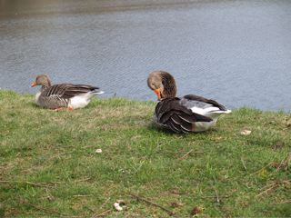 Die Gänse am Schloss ließen sich nicht aus der Ruhe bringen - ... und wieder ein Bild mit Dackelchen