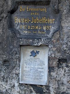 Gedenktafel - Zugang zur Felsenburg - Ein Erlebnis, besonders mit Dackeln!