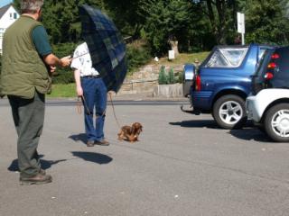 Renate wacht über den Ablauf Frank dreht mit Amy seine "Straßenrunde" - Ein sich öffnender Schirm kann Amy nicht erschüttern