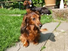 Biene wurde am 12. Januar 1997 geboren und sollte eigentlich nicht verkauft werden. Aber als sie circa sechs Monate alt war, da kam ein Anruf einer älteren Dame, die unbedingt einen weiteren Dackel brauchte - zu ihrer Standardhündin, die auch aus dem Zwinger kam aus dem mein beste Freundin kommt. Biene hat dann sechs Jahre zusammen mit ihrer Dackelfreundin bei diesem Frauchen gelebt und dann kam der Tag als sie ins Tierheim mussten, weil Frauchen ein Pflegefall war und sich nun niemand mehr um sie kümmern wollte/konnte.